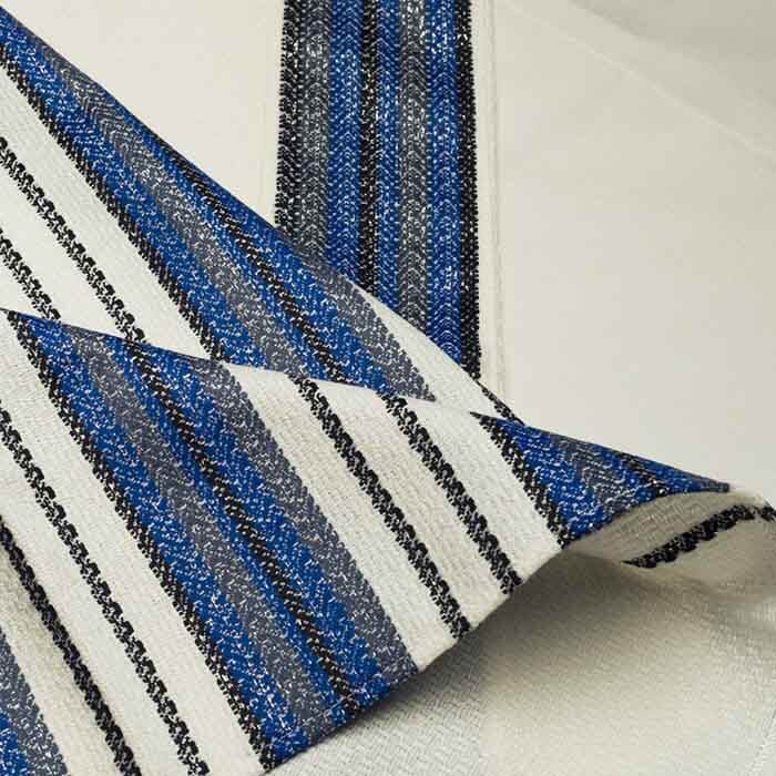 הטלית ארוגה מעשה אומן כבד צמר הנראה כחליפת מעצבים יוקרתית, טקסטורת הבד שונה מהרגיל ויוצרת תחושת חספוס עדין המשתלב בהרמוניה מושלמת עם דוגמת הפסים. החספוס העדין תורם לאחיזתה של הטלית על חליפת המתפלל ומונע את החלקת הטלית מהכתפיים בזמן התפילה.