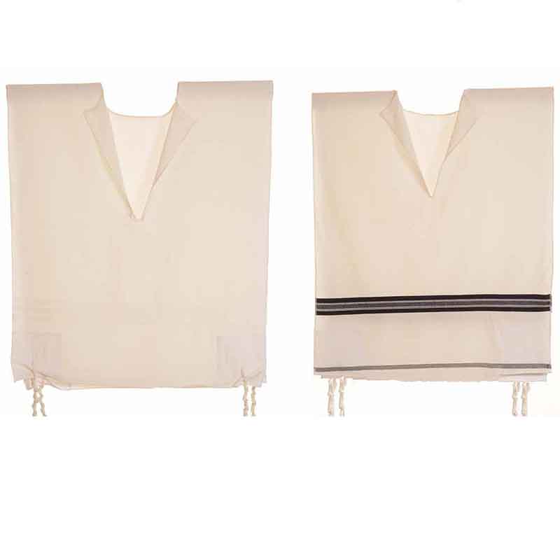טלית קטן צמר רחלים – פסים שחור פסים לבן